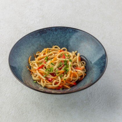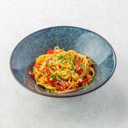 Рис с овощами (морковь, сладкий перец, китайская капуста, зелёный лук)