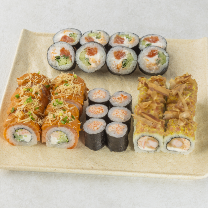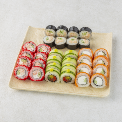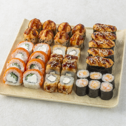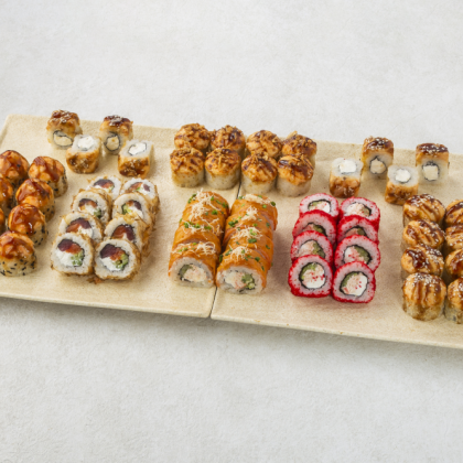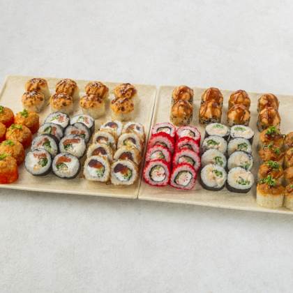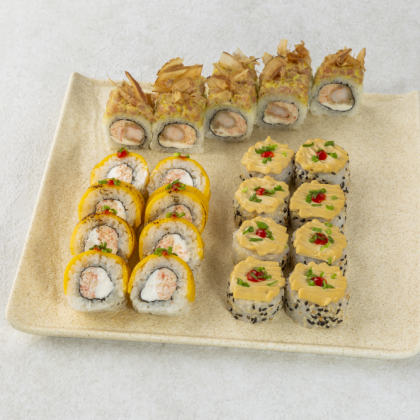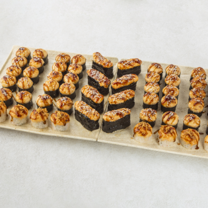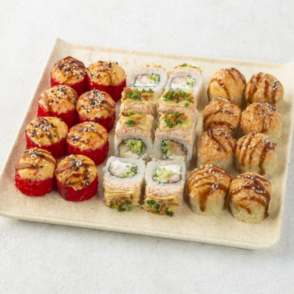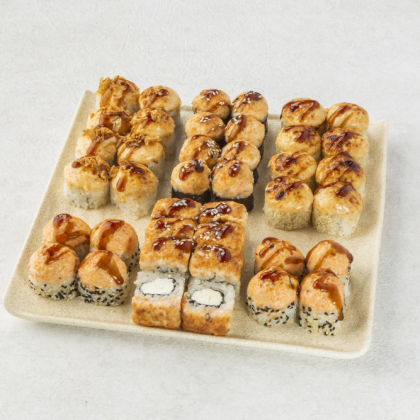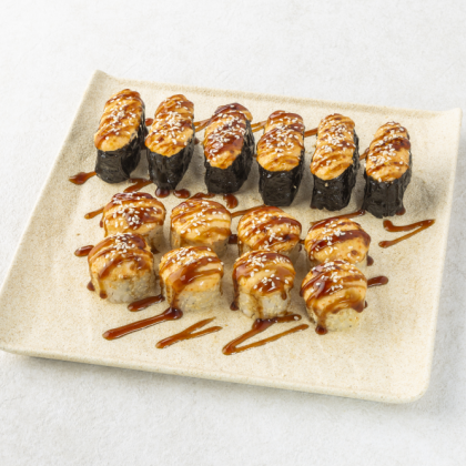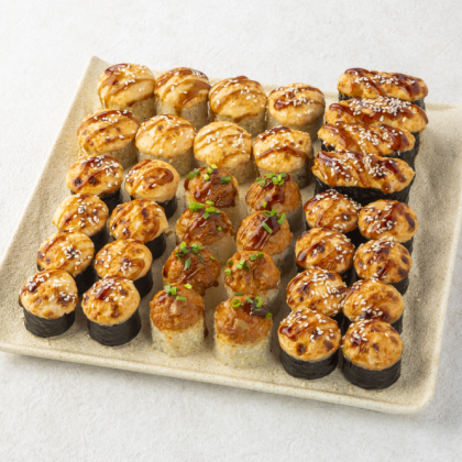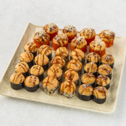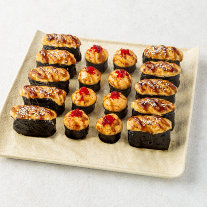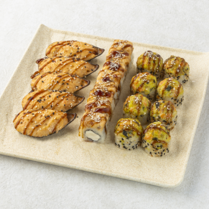 Запечённый набор: Чизу Ролл (кура), Запечённые Суши с жареной курицей (4 шт.), Запеченные Суши со снежным крабом (4 шт.); 16 шт.