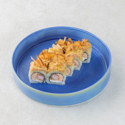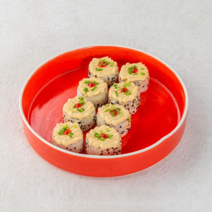Сыр чеддер, снежный краб, сливочный сыр, соус аки, соус шрирача, зелёный лук, рис, нори; 8 шт.